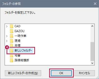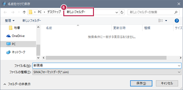 - 保存先が変更されたかを確認しましょう。[座標地番SIMA]の保存先が設定したフォルダーになっています。