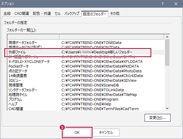- 「外部ファイル」の参照先が変更されたことを確認して [OK]をクリックします。