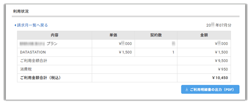 現在の支払い状況(請求月一覧)が表示されます。[請求月]をクリックすると、各月の請求明細が表示されます。