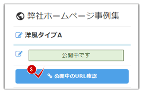 - 「未公開中です」表示が[公開中のURL確認]に変わりますので、クリックします。