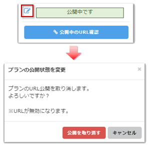 公開した紹介プランを取り消して未公開に戻すには、下図のアイコンをクリックします。