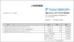 「インボイス制度(適格請求書等保存方式)」に対応しました。 ※ご利用明細書(pdf出力)イメージ ![]() ※3Dカタログ.com契約でクレジットカード・口座振替支払をしているユーザーが対象です。 |