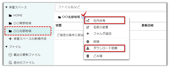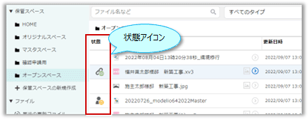 公開状態アイコンを表示するようにしました。![]() また、保管スペース同様、ファイル一覧内外を右クリックしても適宜なツールメニューを表示するように改善しました。 また、一覧内の「フォルダパス」表記を「場所」に変更しました。 |