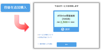 ATDriveの容量を50GB単位で画面上から追加できるようになりました。