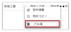 | ごみ箱 | 申請書物のごみ箱機能を追加しました。 ※完全削除は「ごみ箱」で再度実行します。 ![]() (申請物件の「ツールメニュー」に「ごみ箱」を追加) |