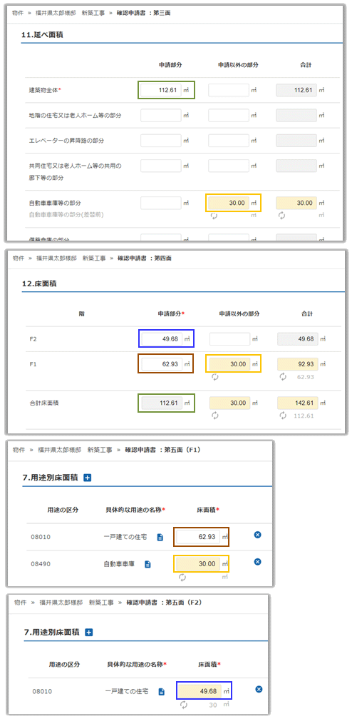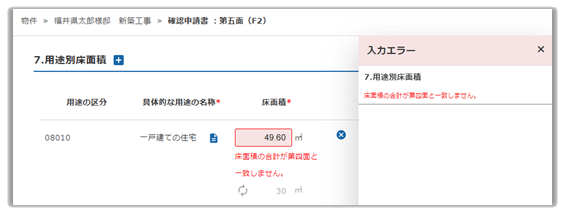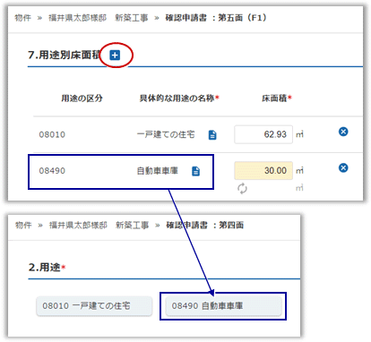 B)確認申請の第四面の「2.用途」の用途の追加・変更方法を第五面の「7.用途別床面積」で行えるように拡張しました。![]() |