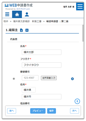 3Dカタログcomサイトの「WEB申請書作成」、および、弊社建築CAD「ARCHITREND ZERO」の[図面印刷]-[申請]より利用可能です。
