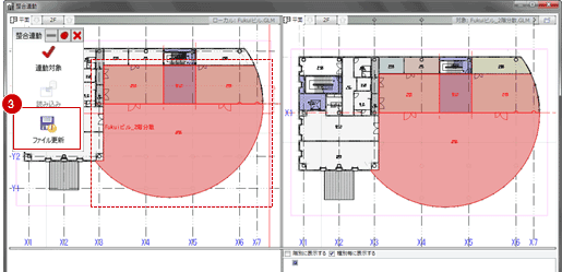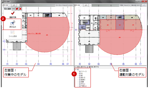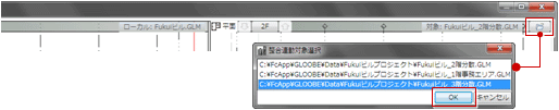 リンク関係にある分散モデルが複数ある場合は、「整合連動」画面の「連動対象選択」をクリックして、対象の分散モデルを選択します。