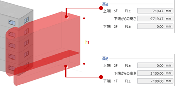「性能編集」の延焼のおそれのある領域には、燃焼ラインの水平距離と高さ情報も反映されます。