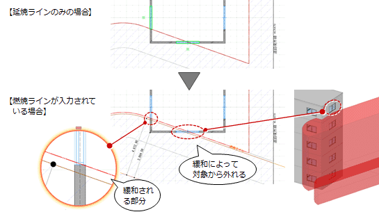 燃焼ライン延焼ラインの緩和規定である燃焼ラインを描画します。