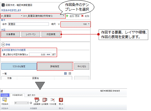操作については、「全体投影配置図を配置する」「リストから図面を選ぶには」を参照してください。