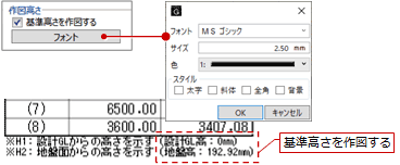 (建物高さ符号の作図については、「計算建物や建物高さ符号の表現を変更するには」を参照)