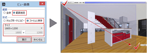 「ビュー画像」を選びます。- 画像を作成する範囲を指定するか、全体にするか選びます。
