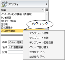 | テンプレート追加 | 現在のプロパティの内容をテンプレートに新規登録または更新します。 「テンプレートの新規登録・更新」と同じ機能です。![]() |
