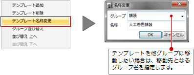 | テンプレート名称変更 | 選んでいるテンプレートのグループ、名称を変更します。![]() |