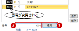 - レイヤ番号を変更した場合は、「適用」をクリックします。