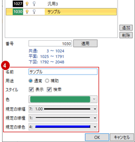 ・4097~5120は展開ビューで有効なレイヤ - その他のレイヤの名称、線幅などを設定します。