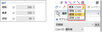 表示設定の簡略/標準/詳細を切り替えたときに平面ビューで描画する縮尺を設定します。
