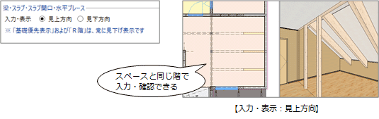 梁・スラブ・スラブ開口・水平ブレースについて、見上方向・見下方向のどちらで表示するかを設定します。