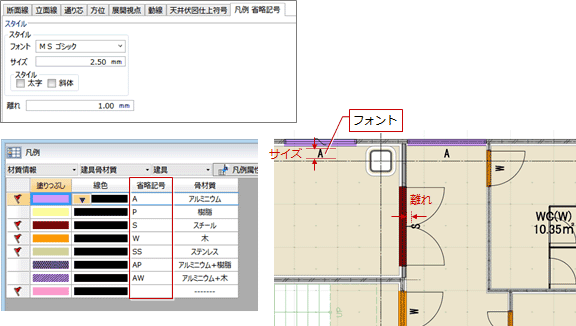 「凡例」で表示する省略記号のフォント、サイズなどを設定します。