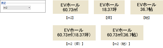 スペースおよび用途区画について、面積を表記するときの単位を設定します。