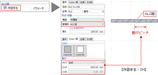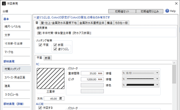 - ALC縦などハッチングが固定のものは、「作図する」のチェックで作図するかどうかを切り替えます。