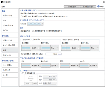 戸・窓の掃き出しの表現を、引き、開きなどの建具種別ごとに選択します。