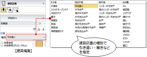 なお、「引き違い」「片開き」などの建具区画の種別は、特別編集の