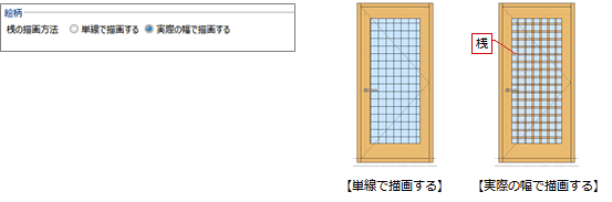「桟」で入力した見付幅で表示するときは、「実際の幅で描画する」をONにします。