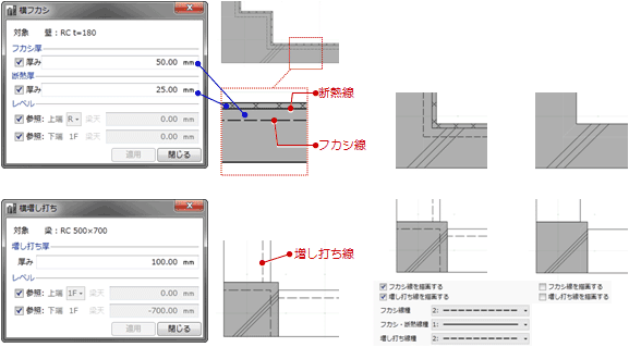 被覆線・下地線、意匠目地の表現について設定します。