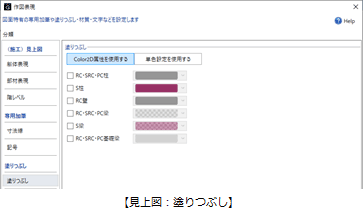 杭伏図、底盤伏図、基礎伏図、見上図、見下図、屋上伏図における部材の塗りつぶしについて設定します。