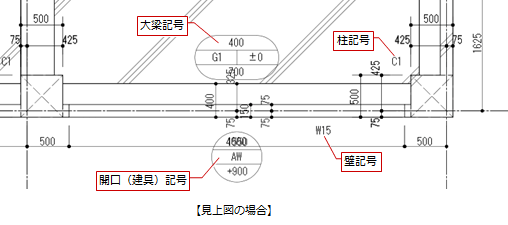 図面 部材 作図位置 平面系図面 柱・柱型・独立基礎 左上 梁・連続基礎 中央 壁 終点から2/5 開口(建具) 外 断面図 梁・独立基礎・連続基礎 右下 壁 中央 スラブ・べた基礎 中央 開口(建具) 見付:左上、断面:断面方向に向かって左 - 作図した寸法線を移動した後に図面再作成を行うと、寸法線がプログラム固定位置に戻ります。