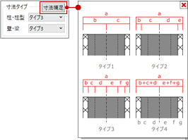 - 寸法タイプについては、「寸法補足」をクリックして確認できます。