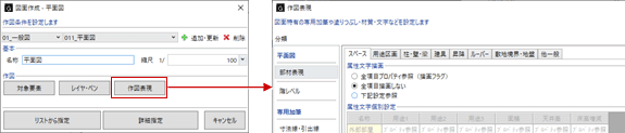 図面・GLOOBEシートの作図表現は、平面図、断面図、平面詳細図などそれぞれの図面ごとに設定します。