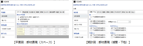 平面詳細図、矩計図のときに「被覆・下地」タブで設定できます。