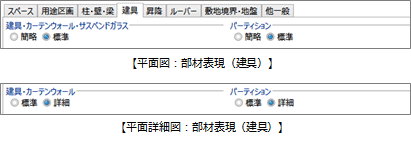平面詳細図の場合は、標準表現にするか、詳細表現にするかを選択します。