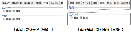 平面詳細図のときに、カタログ部品を標準表現にするか、詳細表現にするかを選択します。