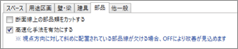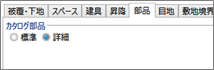 断面図、立面図、平面詳細図、矩計図、確認申請立面図、確認申請断面図、燃焼断面図のときに「部品」タブで設定できます。