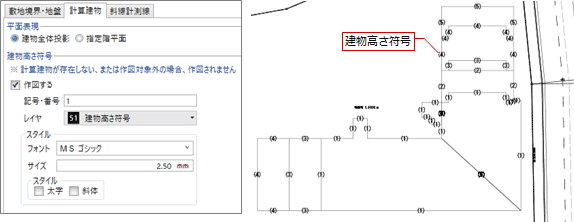 計算建物や建物高さ符号の表現を変更するにはM037550_bzi_sec14