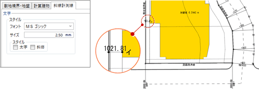 斜線計測線の文字のフォント、サイズなどを設定します。
