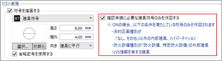 - 確認申請平面図では、申請に必要な建具符号のみを作図できます。