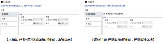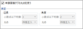 「申請面積表示設定」で設定した丸めを参照する場合は「申請面積タブの丸めを使う」をONにします。