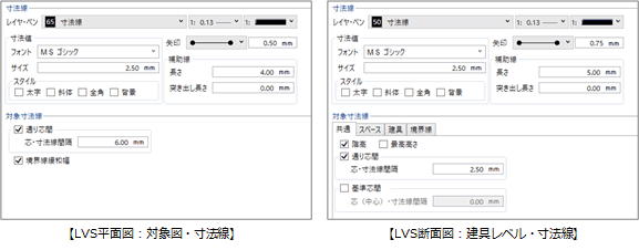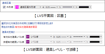 LVS平面図、LVS断面図、LVS面積求積図の表現について設定します。