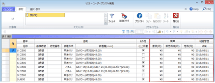- 「リスト編集」をクリックすると、「対象要素」で選択しているオブジェクトのプロパティが一覧で表示され、プロパティをまとめて編集できます。