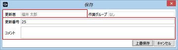 - 「更新者」や「コメント」欄には、モデルデータ保存の際に表示される「保存」ダイアログの情報が表示されます。