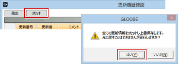 更新履歴が不要になった場合は、「更新履歴確認」ダイアログの「リセット」をクリックします。