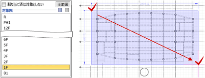 - 日付を割り当てる部材が完全に含まれるように、平面ビューで範囲を指定します。
