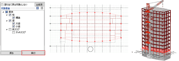 - 対象の部材を選んで、「実行」をクリックします。