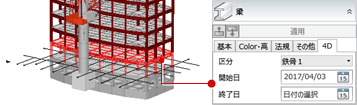 - 選択した部材のプロパティ「4D」タブに設定されます。