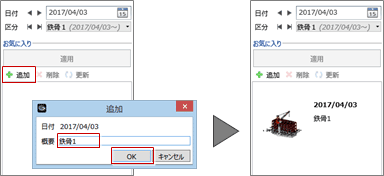 「追加」をクリックすると、日付による表示と視点をお気に入りとして登録できます。